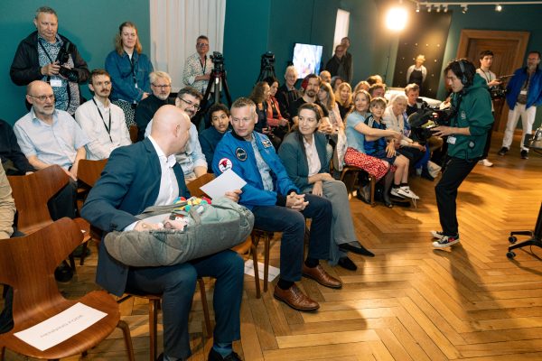 Andreas Mogensen afslørede selv – sammen med kulturminister Jakob Engel-Schmidt – astronautportrættet. Efter portrætafsløringen var en oplagt Mogensen gæst i ‘Talk med Tore Leifer’ i Riddersalen sammen med Frederiksborgs samlings- og udstillingschef, Mette Houlberg Rung. Her fortalte Andreas Mogensen om praktikaliteter i rummet, og hvor mange gange på et almindeligt døgn, det blev “nat” på ISS. Svarene kan også høres i museets podcast. Arrangementet blev nemlig optaget til podcasten PORTRÆT, episode 59.