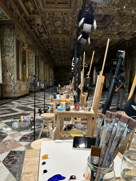 Under optagelserne havde besøgende på museet adgang til at kigge kunstnerne over skuldrene.
