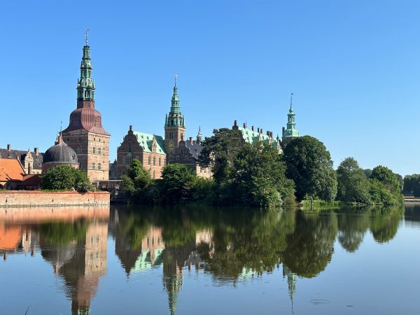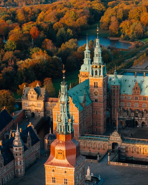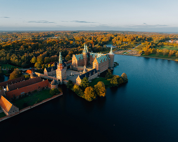 Frederiksborg Slot rejser sig majestætisk i Slotssøen. Hovedslottet på den nordlige ø er et enestående bygningsværk opført i klassisk nederlandsk renæssancestil og består af Kongefløjen, Prinsessefløjen og Kirkefløjen samt en terrassebygning.