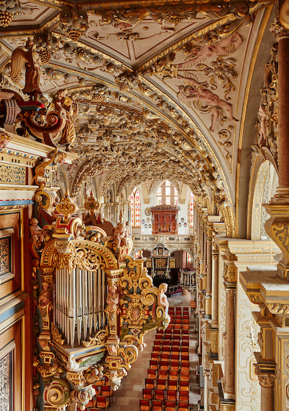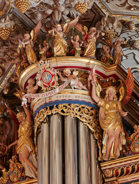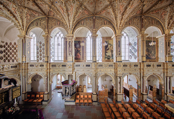 Der blev ikke sparet på noget; dygtige håndværkere blev hentet rundt om i Europa. Overalt i den treskibede kirke ses fantastiske udsmykninger: unikke intarsia-arbejder i stolestaderne, bemalet og forgyldt stuk i hvælvingerne, apostelfigurer i alle nicher og symboler på kongens opgaver og pligter i buerne. Alt sammen som en stærk understregning af kongens valgsprog: REGNA FIRMAT PIETAS (R F P), på dansk: “Fromhed styrker rigerne”