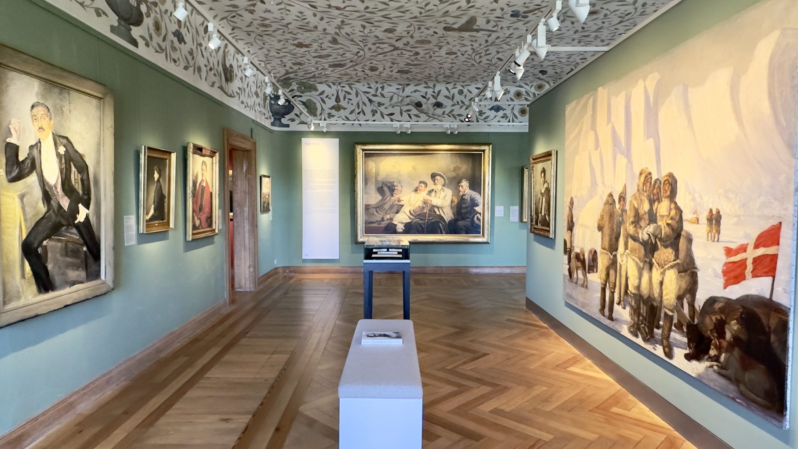 Derunder fra venstre Benno Berneis’ portræt af Herman Bang, Michael Anchers portræt af Elisabeth Dons og Bertha Dorphs portræt af Bertha Wegmann, Michael Anchers “Kunstdommere”, Herman Vedels portræt af Knud Rasmussen og Harald Moltkes store maleri af den litterære ekspeditions lejr i Nordøstgrønland.