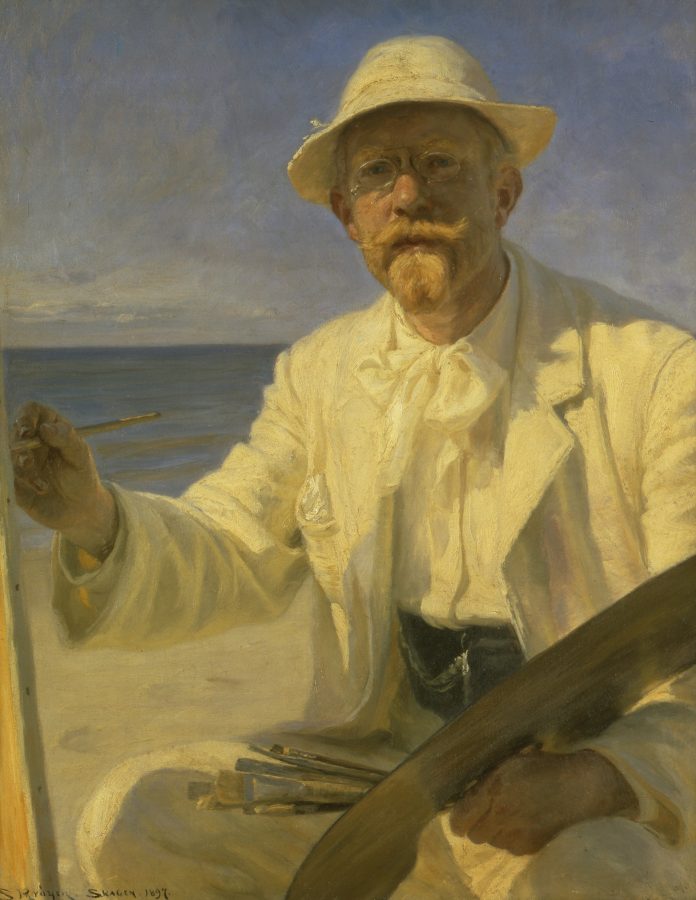 De to nederste malerier her på siden er Valdemar Andersens portræt af forfatteren Henri Nathansen og P.S. Krøyers selvportræt.