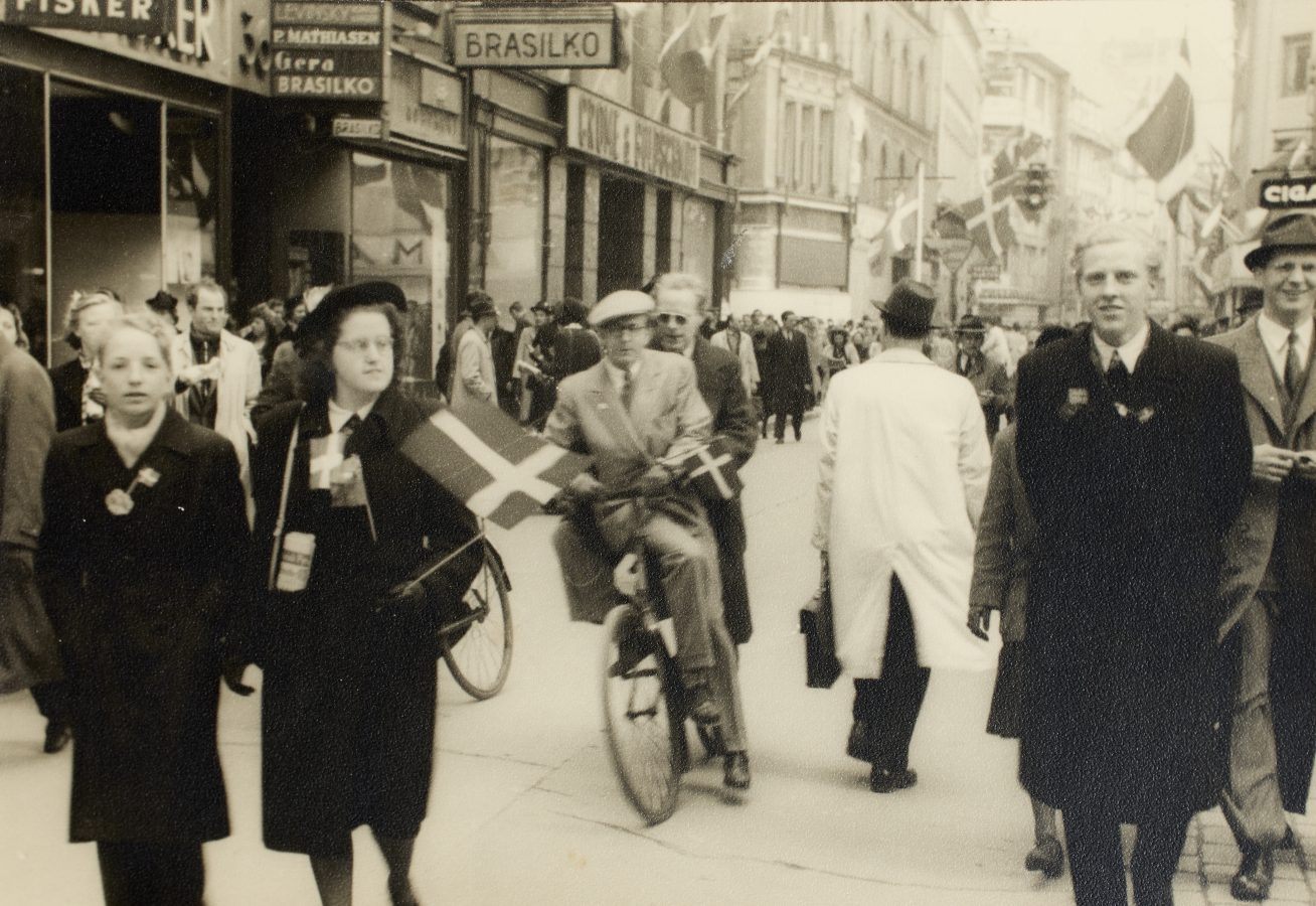 I samme øjeblik fløj mørklægningsgardinerne til side, og dannebrogsflag dukkede op i vinduer og hænder over hele landet. Folk strømmede ud på gader og stræder, græd, sang og fejrede som aldrig før. Det er 80 år siden i år.
