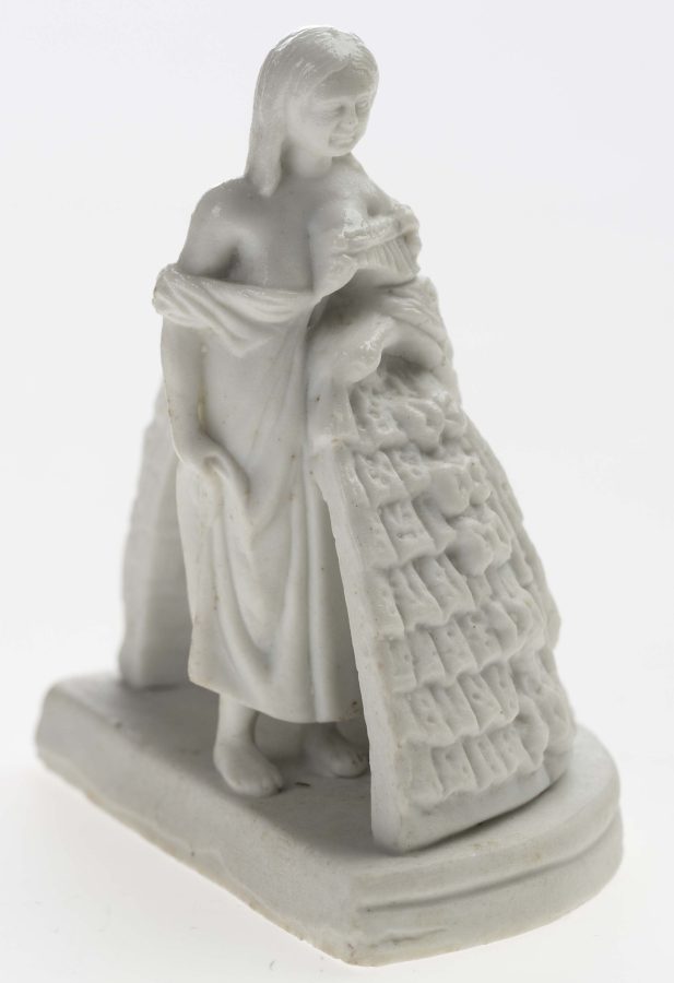 Deriblandt en lønseddel fra Det Kongelige Teater, en skønhedscreme, rejsesouvenirs, smædeskrifter og en smædefigur af porcelæn.