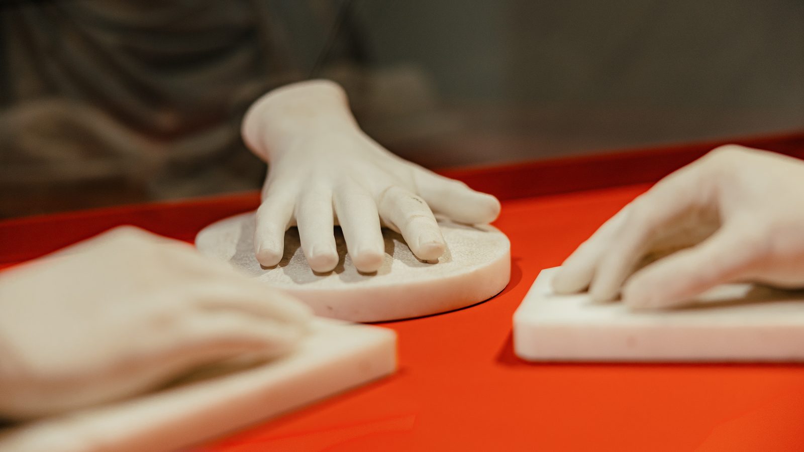Det er en kærlighedstrekant, som i vores udstilling også bliver markeret med de tre hænder udstillet på et trekantet podium.