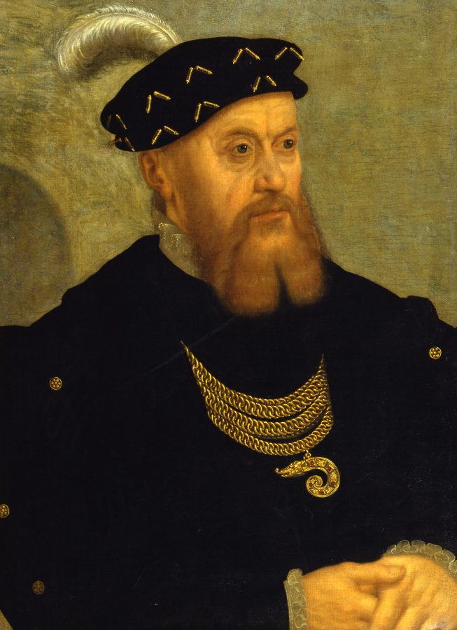 Arvefølgekrigens sejrherre, Christian 3., er sandsynligvis malet af Jost Verheiden eller Jacob Binck. Portrættet hænger flot i stue 26 på Frederiksborg.