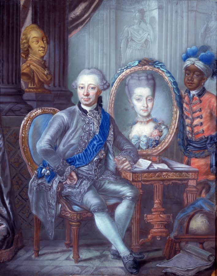 Øverst ses maleriet af Afrika fra Audienssalen. Det er en kopi fra 1814 af Peder Andersen Nordmands originale maleri fra 1680’erne.
