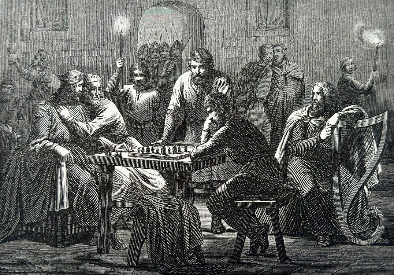 Bemærk på billedet af Blodgildet, hvordan kong Svend står og lægger skumle planer med sin rådgiver, mens væbnede krigere står klar i baggrunden. Knud klamrer sig ængsteligt til Valdemar. Om et øjeblik er Knud dræbt og Valdemar har taget flugten.